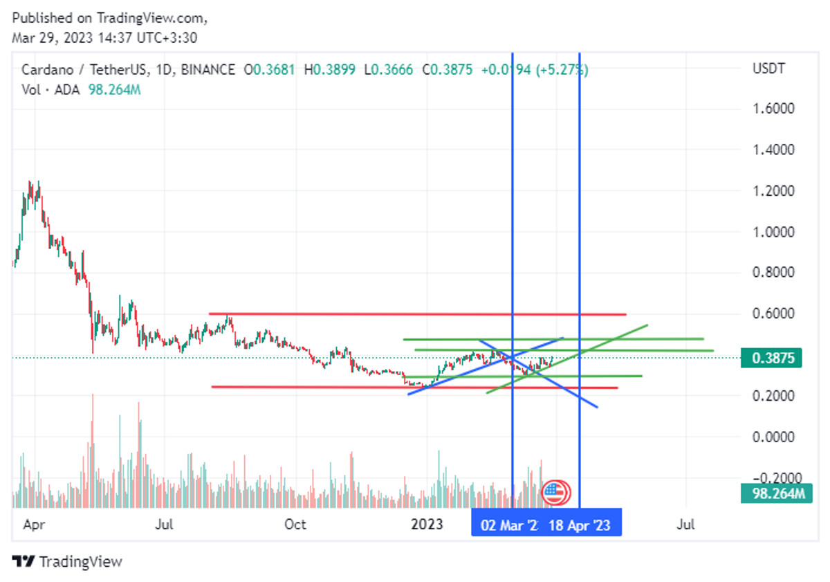 روند کاردانو کاملا صعودی نشون میده هدف ها 0.4204 بعد 0.4720 و 0.6098 می باشد اگر بتونه مقاومت هایی رو که با رنگ سبز براتون مشخص کردم بشکونه و در غیر این صورت ریزش خواهد کرد به 0.3113 و بعد به 0.2252