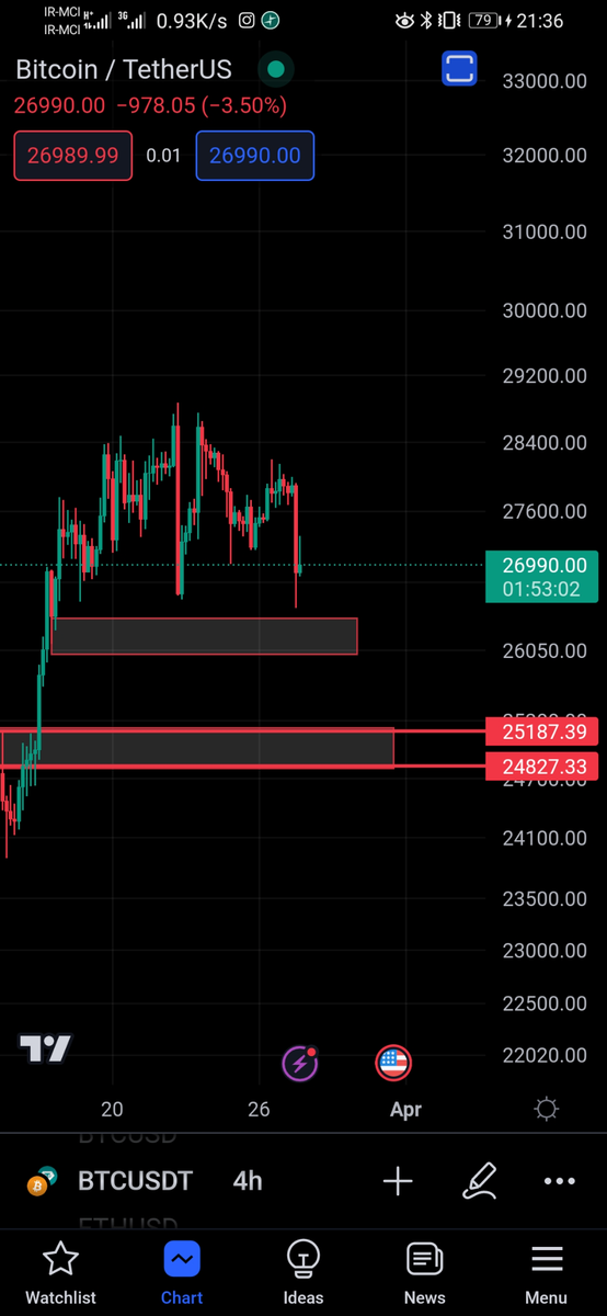 دوستان اگه برید به تحلیل 4 ساعته ی قبلیم نگاه کنید نواحی دقیقا به همان سقف و کف واکنش نشون داده اما یه نکته :احتمال میدن 4 ساعته وایکوف تشکیل داده!