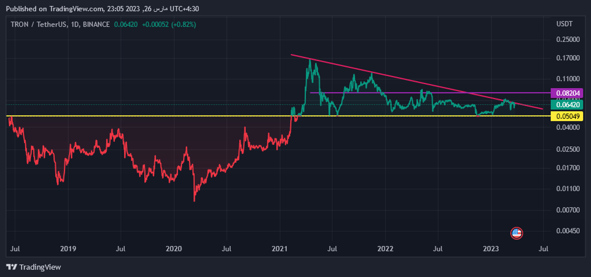 ترون / بلند مدت روزانه : همراه با حمایت و تارگت پیش رو ... رشد یا اصلاح ؟ پیش بینی از شما ...