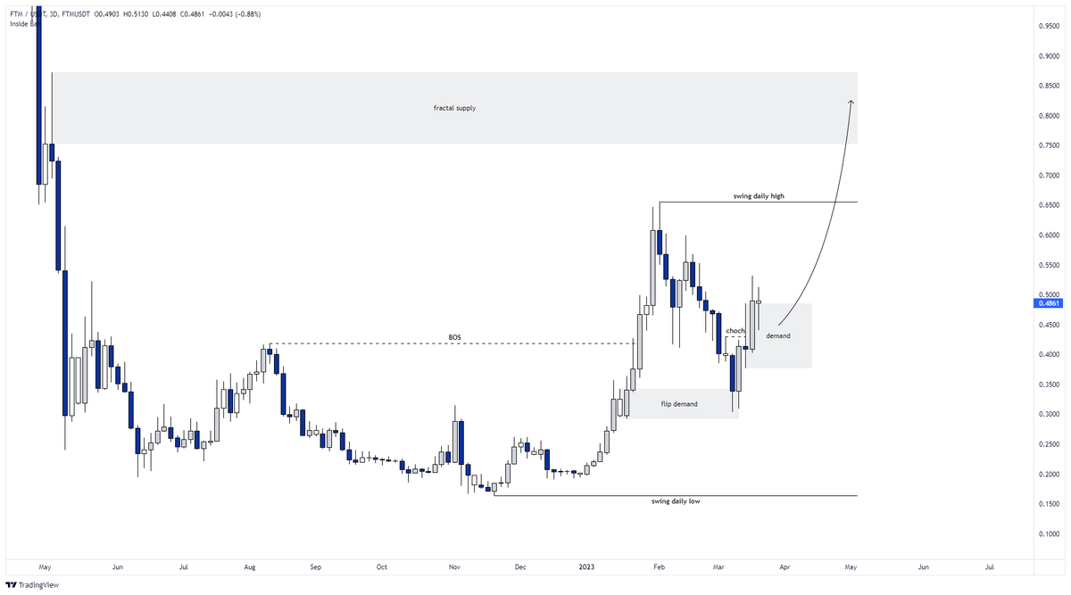 فانتوم در تایم فریم سه روزه،سویینگ صعودی تشکیل داده و انتظار رسیدن به محدوده هشتاد سنت را خواهم داشت.