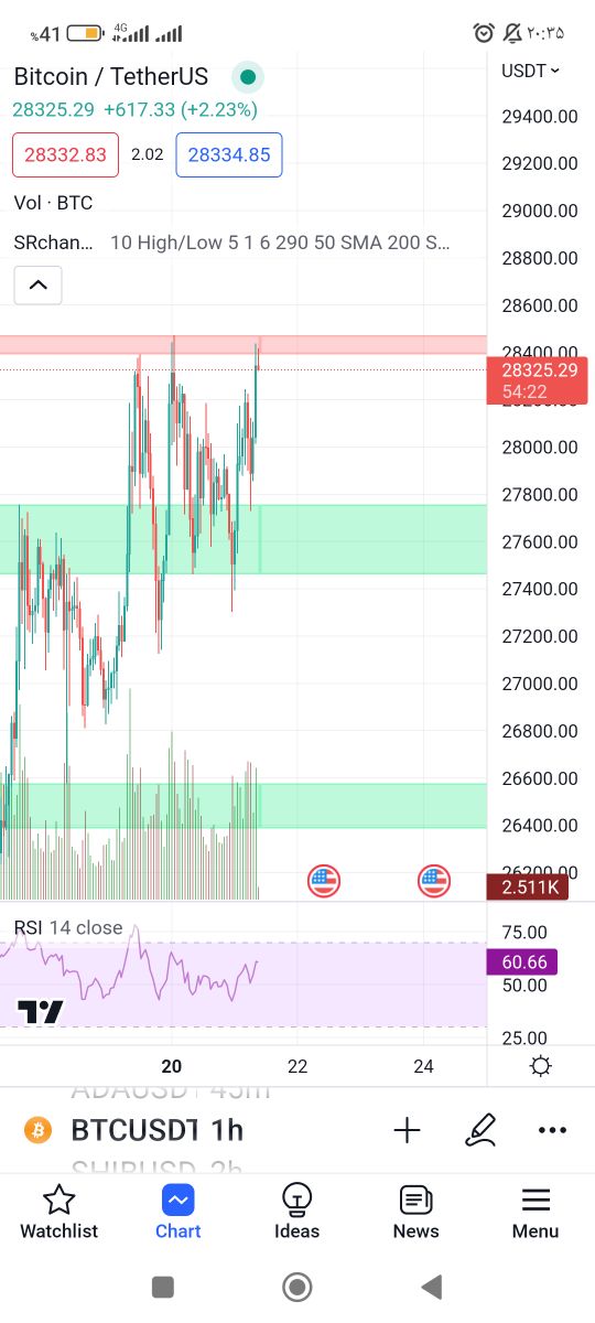 در تایم فریم یک ساعته در محدوده ۲۸۴۰۰ یک مقاومت وجود داره که اگر موفق به شکستنش بشه و تثبیت کن انشالله ۳۰۰۰۰ و ۳۲۰۰۰۰ در دسترسه