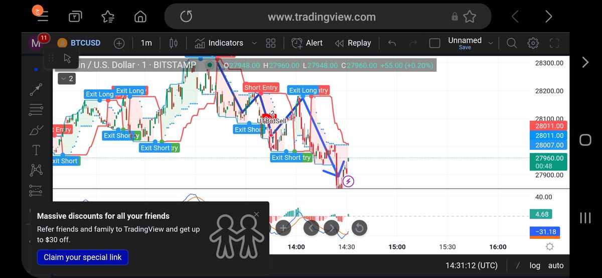 دوستان بیتکوین الگوی دره سرانه کاهشی رو تشکیل داده که امکان ریزش داره و تا ۲۷۳۰۰ بره