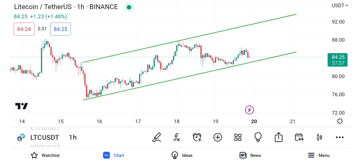 Ltcusdtمنتظرواکنش به کف کانال باشید