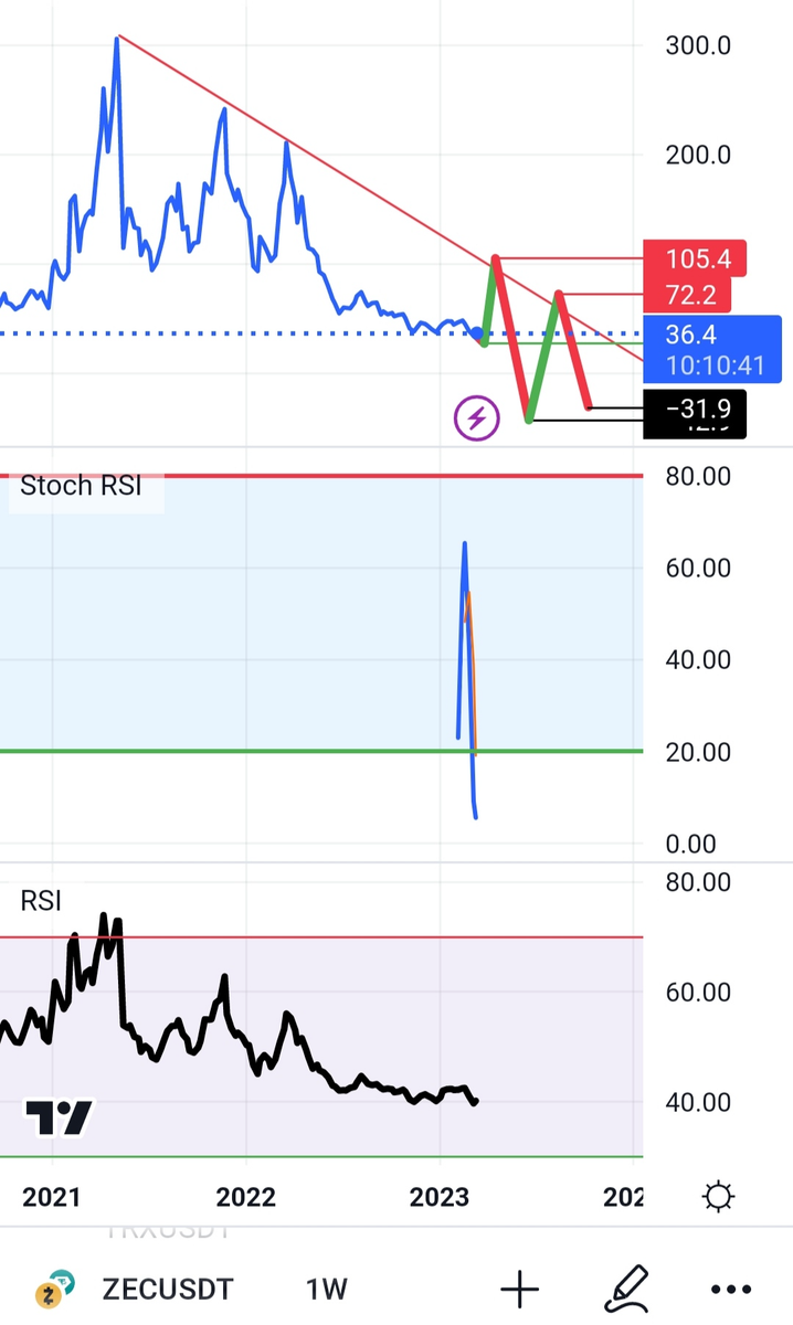 دوستان عزیز بهترین خرید برای ارزzecمابین۲۷الی۲۸هستش کف قیمتی احتمالی هستش سقف قیمت ۱۰۵هستش ورود خروج براتون اعلامت زدم اگر حس کردین اینطور داره می شه لطفا چارت خوب برسی کنید برای نقطه بهتر ورود چون نقطه ورود خروج کمی بالا پایین داره 😍😍🤑🤑🤑🤔