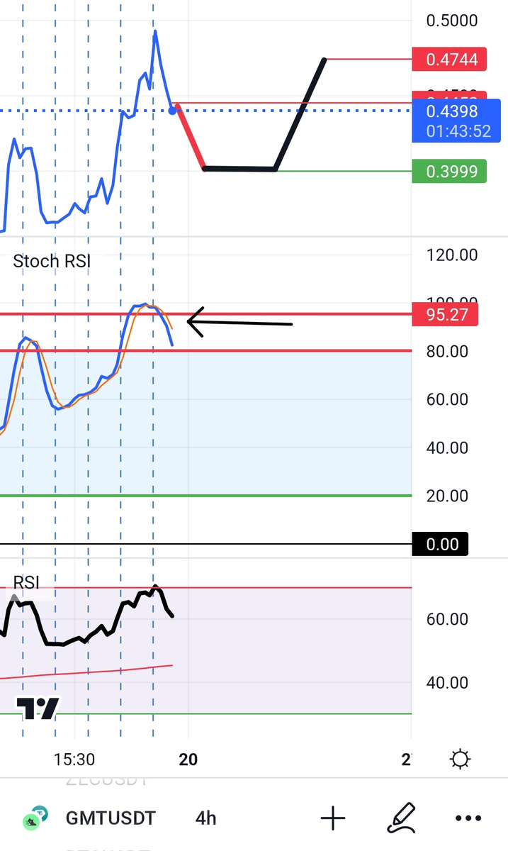 بهترین نقطه ورود ۰.۳۹نقطه خروج۰.۴۷با فلش براتون اعلامت زدم بامپ خوبی می شه رودلیل بامپ هم stoch rsiبا فلش نشون دادم 😍😍😍🤑🤑🤑🤑🤑