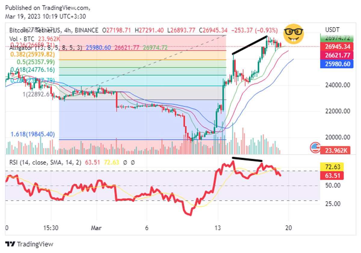 باتوجه به واگرایی در محدوده ی اشباع خرید و تشگیل الگوی پرچم نزولی در سطح مقاومتی 4 ساعته و همچنین باتوجه به سطوح تاریخی و رفتار بیت کوین نزول قیمت را اعلام می کنم. 12 ساعت قرمز داریم. این تنها تحلیل شخصی و اشتراک گزاری دیدگاه است و سیگنال خرید یا فروش نیست.
