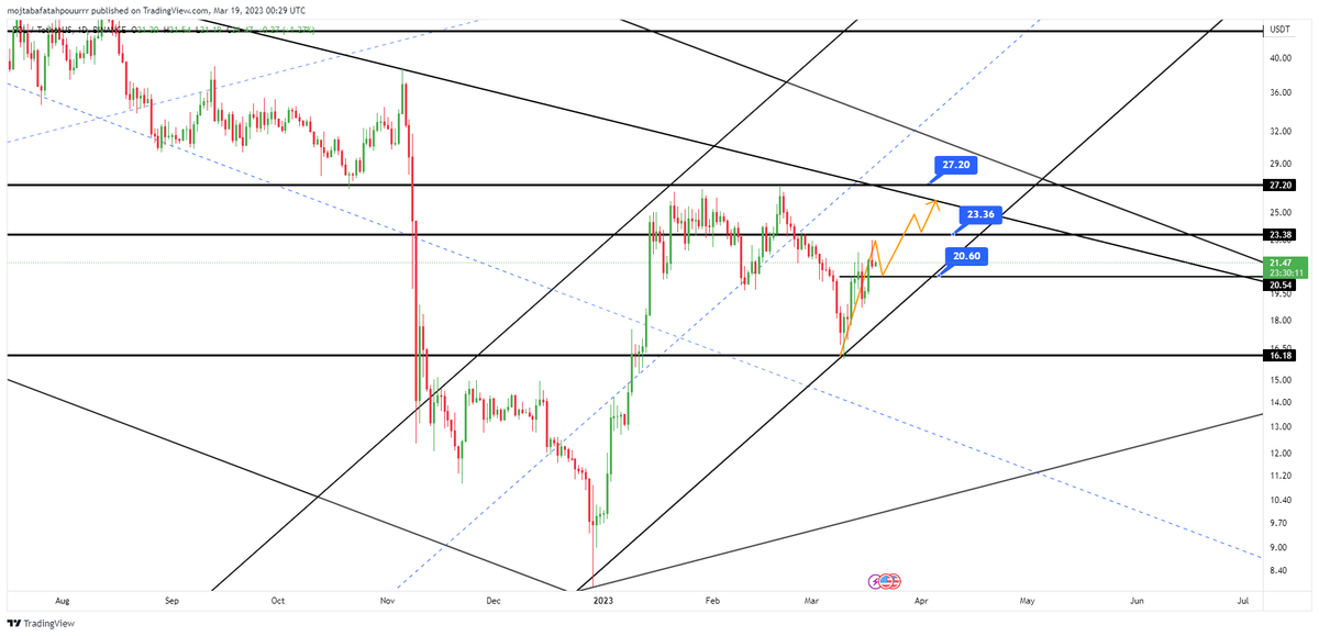 لطفا به چارت توجه کنید . ارز اگر بتواند قیمت حدود 20.60 را حفظ کند میتواند تا قیمت حدود 23.36 حرکت کرده و بعد از شکست ان تا حدود قیمت 27.20 حرکت کند . بعد از شکست قیمت 27.20 تحلیل آپدیت میشه .