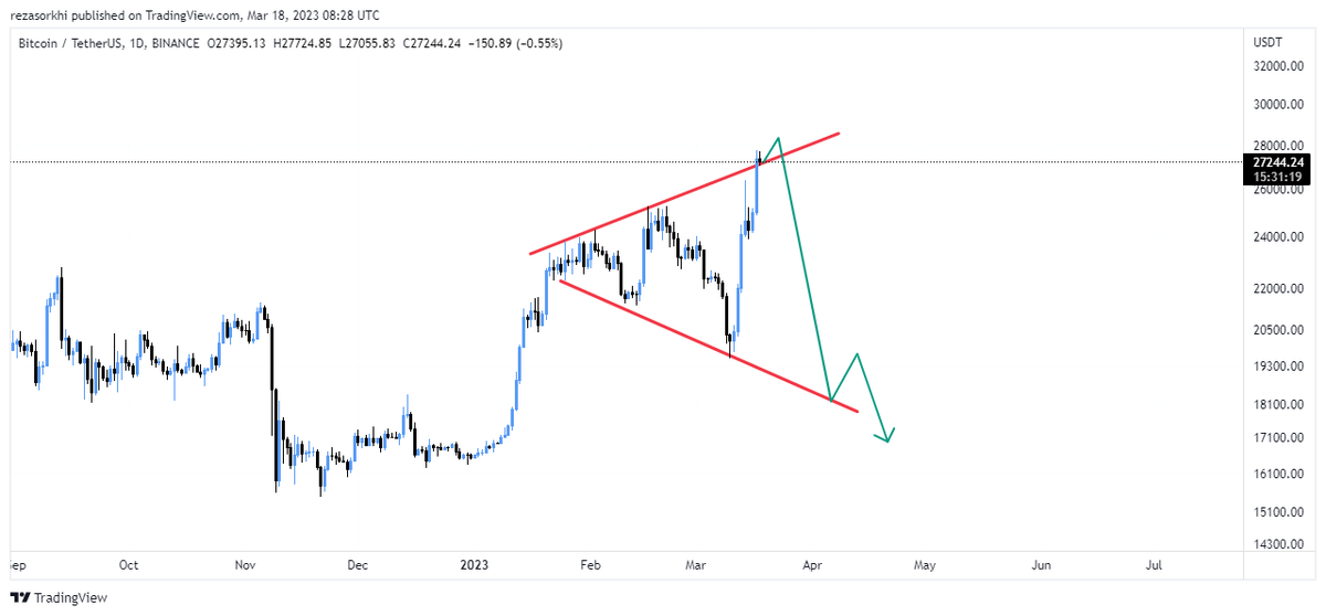 معمولا صعودها و یا سقوط هایی ک منطق خاصی از حیث تکنیکال ندارند ورق بازار در یک چشم بهم زدن بر می گردد بنابراین سناریو بالا را بسیار محتمل تر از صعود تا اعدادی مثل 30 و 35 هزار می دانم