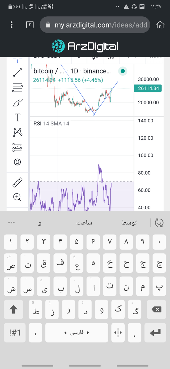 با توجه به برگشت قدرتمند از کف تایم فریم روزانه و تثبیت قیمت انتظار رشد تا محدوده ۲۷۵۰۰ تا۳۰ هزار قابل تصوره