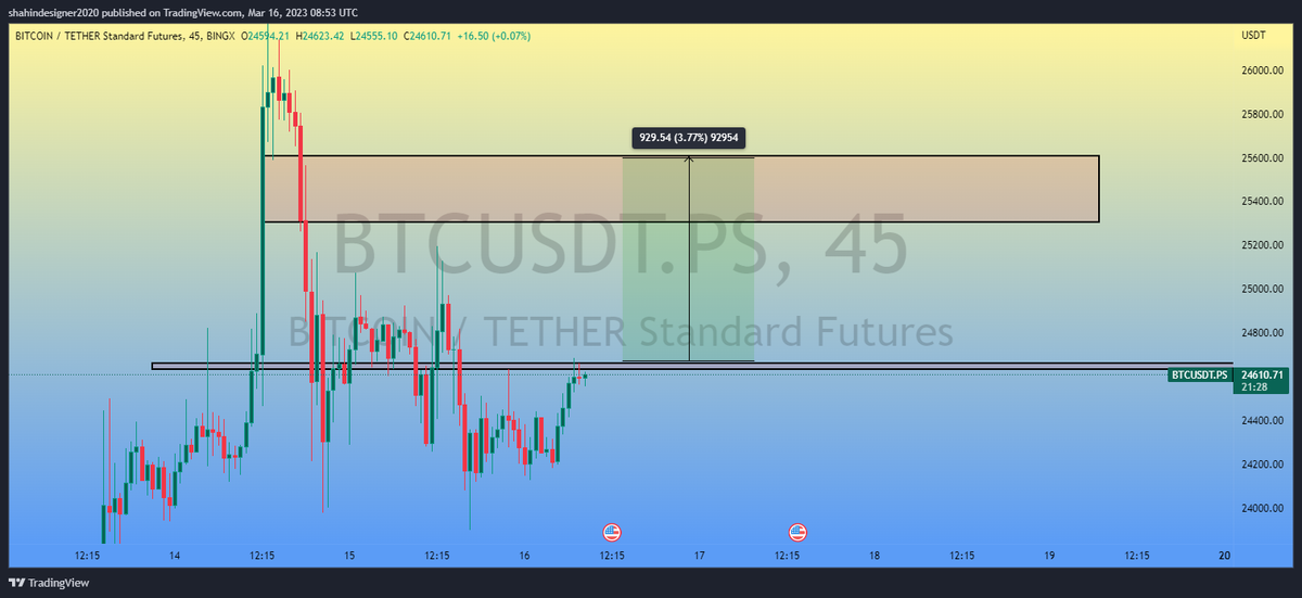 در صورت شکست مقاومت صعود داریم تا ۲۵۰۰۰ و ۲۵۵۰۰ در غیر اینصورت تا ۲۳۳۰۰ نزول داریم . تایم فریم ۴۵ دقیقه حتما تایید بگیرید .
