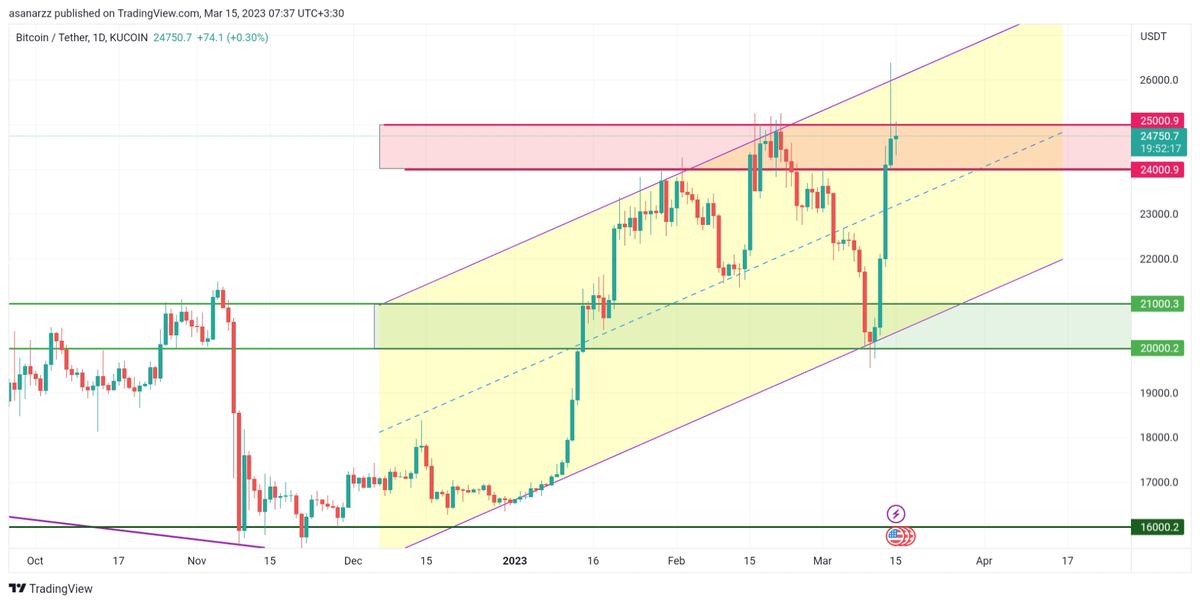 خب قیمت نتونست مقاومت 25,000 بشکنه و انتظار میره بره بسمت کف کانال