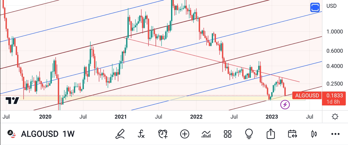با توجه نزول بازار و تست و پُر کردن گپ خالی شده در منطقه صعود اکثر رمز ارزها در دو ماه گذشته بنظر میرسه این رمز ارز آینده دار که کم کم باید خودشو تو قدوقداره اتریوم نشون بده طبق کانال کشیده شده و فاصله گرفتن از مویینگ 200 در همین عددی که هست یعنی 0.1830 انتهای نزول و کف برخورد با کانال برای صعود خودشو آماده بکنه. البته با توجه به شرایط بیت و آنچین و اتفاقات روزهای آینده دقیقتر میتوان گفت که اصلاح تمام شده و یا خیر. ولی چنانچه این کف از دست بره و البته تثبیت بشه متاسفانه باید منتظر ریزش شدیدتری باشیم که این باز به شرایط بیت برمیگرده، اما چنانچه شرایط بیت خوب بشه و بخواد پولبک به عدد 24 و 25 هزار بزنه باید منتظر صعود خوبی از این رمز ارز پر پتانسیل باشیم.