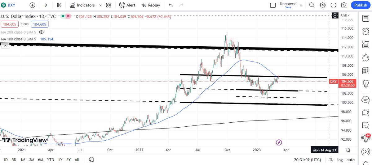 در هر حال احتمال رسیدن شاخص دلار به عدد 106 بسیار سخت و غیر منطقیه