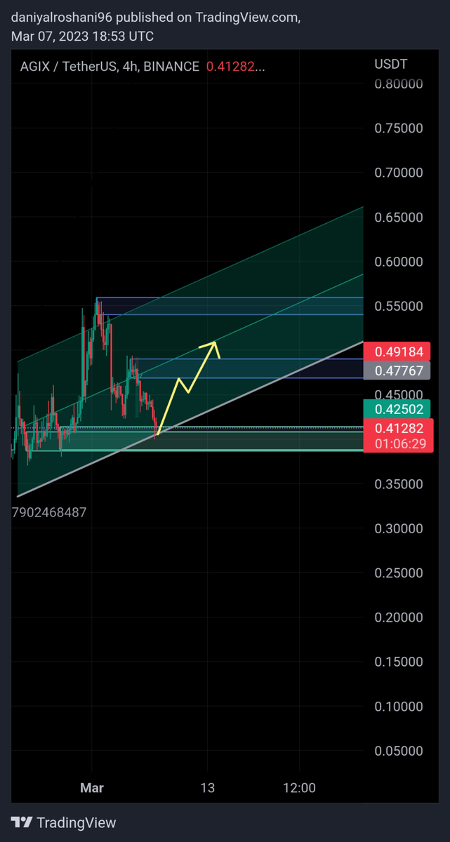 رمز ارز agixروی حمایت قرار دارد واگر حمایت رو حفظ کند میتواند تا محدوده های مشخص شده در کوتاه مدت حرکت کند .