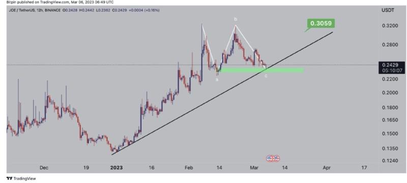 ارز جو (JOE) در حال حاضر بر روی حمایت، کف روند صعودی و در انتهای روند اصلاحی است. ما انتظار داریم این ارز از همین محدوده حرکت صعودی خود را شروع کند. از آن جایی که این ارز جزو اکوسیستم آوالانچ است، در صورت رشد این اکوسیستم، رمزارز جو هم میتواند به قیمتهای بالاتری برسد. تارگت اولیه این ارز میتواند محدوده ۰.۳۰ دلار باشد.