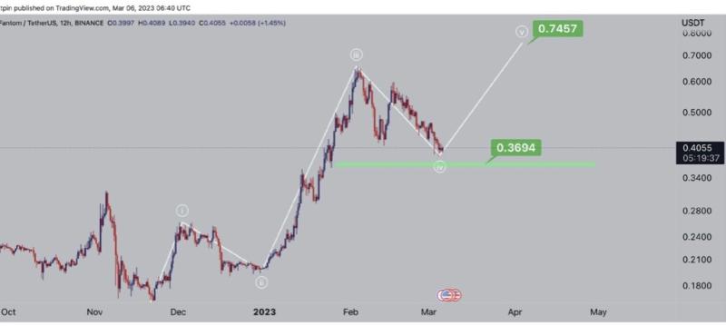 نمودار روند قیمتی ارز فانتوم در تایم فریم ۱۲ ساعته را در یک پنج موجی میبینیم؛ قیمت این رمزارز در حال حاضر به ابتدای محدوده اصلاحی خود رسیده است. در صورت برنگشتن از همین محدوده، ما محدوده ۰.۳۶ دلار را هم برای بازگشت داریم. فانتوم هم مانند آوالانج به کف کانال RSI خود رسیده است و این نیز میتواند سیگنال مثبتی برای رشد این ارز باشد. تارگت این ارز محدوده ۰.۷۴ دلار است.