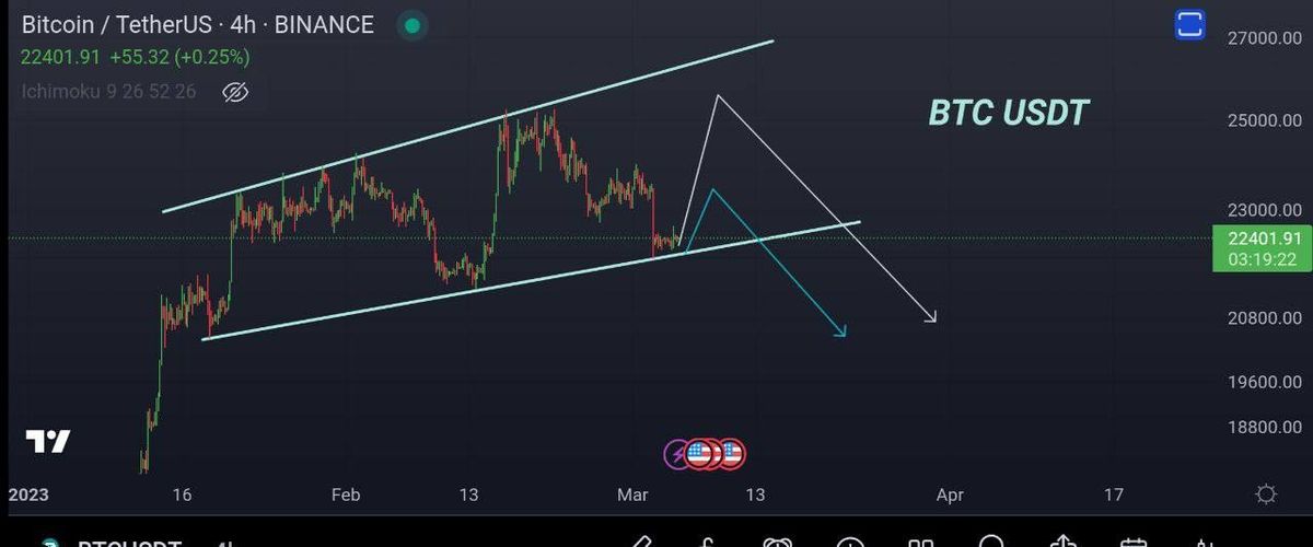 سلام وقت بخیر تحلیل بیت کوین در تایم فریم ۴ ساعته