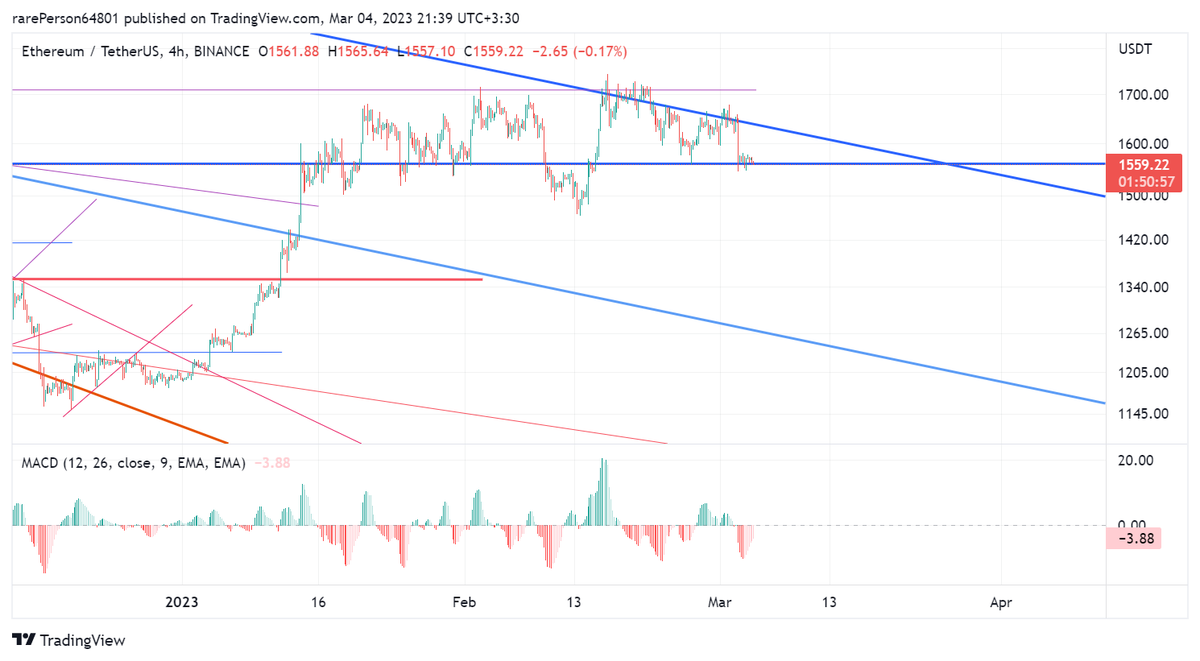 فعلا داره رو خط حمایت بازی میکنه اگر حمایت بشکنه و تثبیت کنه میتونه تا۱۴۶۰ بیاد پایین ولی اگر دوام بیاره حداقل تا ۱۷۰۰ میره
