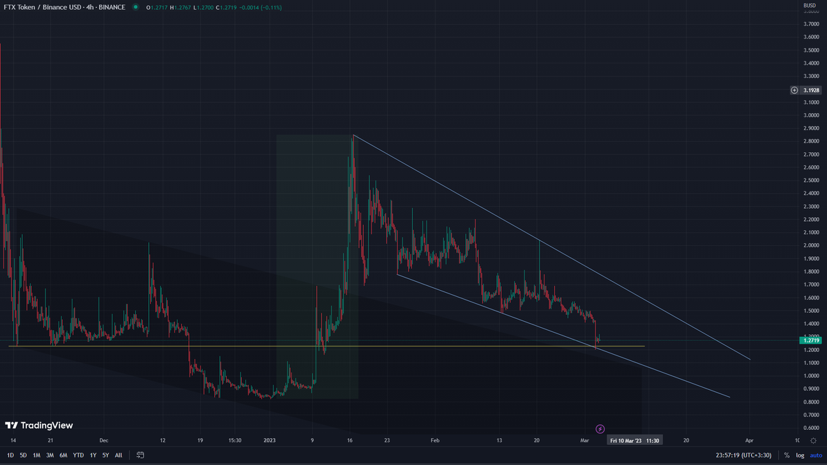 رمز ارز FTT بعد نزول در یه وج نزولی و تکمیل الگوی سرشانه ناحیه صعودی بهینه ای ایجاد کرده و احتمال صعود تا 3.7 الی 4 دلار رو داره و مهمترین خبر برای صعود به بالای 10 الی 20 دلار میشه باز شدن دوباره صرافی باشه. دوستان این دیدگاه و تحلیل فقط بر اساس رفتار های گذشته بازار هست و سیگنال خرید فروش نیست ممنون