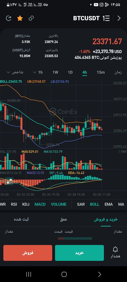 بیت کوین درتایم ۴ساعته درمسیر خوددچارواگرایی شده وثبات خود راازدست داده ودراین نقطه ورود بسیارریسکی میشود.، ،،پس بهتراست تاشروع مناسب روند۴ساعته تحمل وحیجانی عمل نکرد