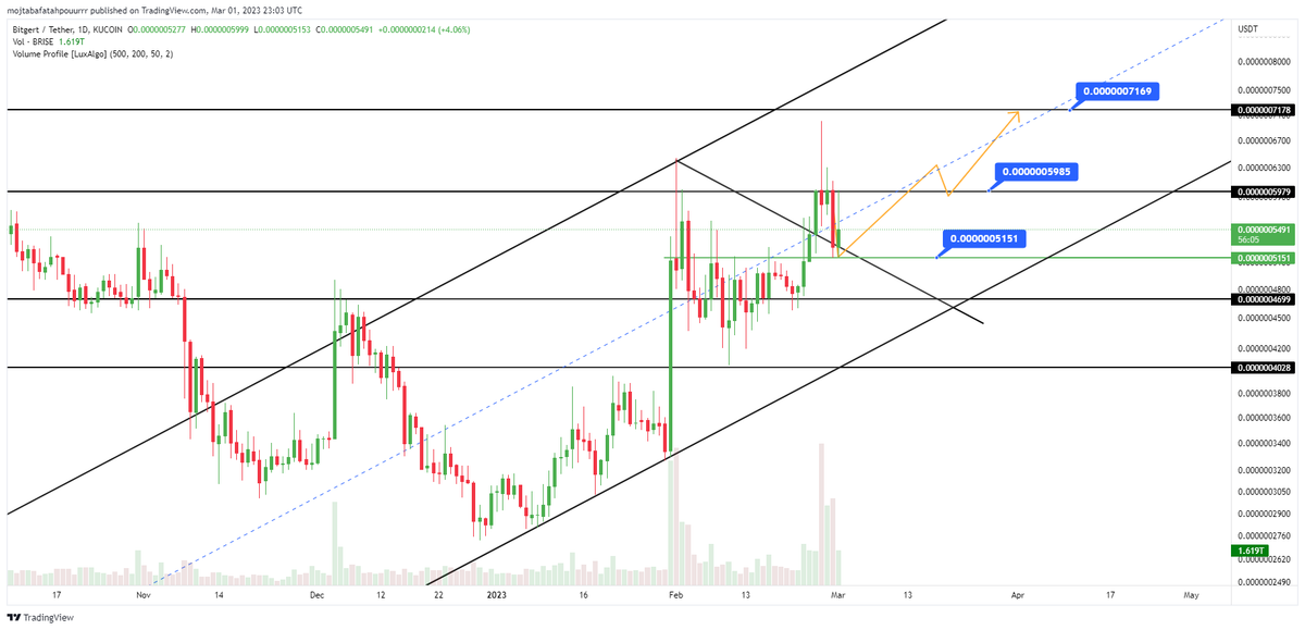 همانطور که در تصویر میبینید ارز درحال ساخت سقف و کف بالا تر است و اگر بتواند محدوده حمایت 0.0000005151 الی 0.0000004889 را حفظ کند انتظار ان را دارم که بتواند قیمت 0.0000005985 را شکسته و به سمت مقاومت 0.0000007169 حرکت کند .