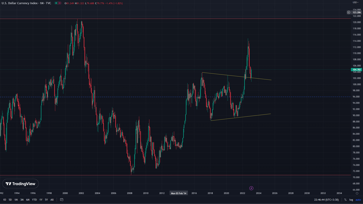 نمودار دلار بعد از بریک کانال در تایم ماهانه الان یه پولبک با یه کندل قوی صعودی داره ماه رو به پایان میرسونه با توجه به قرار گرفتن بیت کوین زیر موینگ اوریج 200 و رسیدن به قیمت 25 هزار دلار وبرگشت از اون میخوام نظر شما دوستان رو در مورد این اتفاق بدونم چه پیشبینی واسه قیمت دارید.