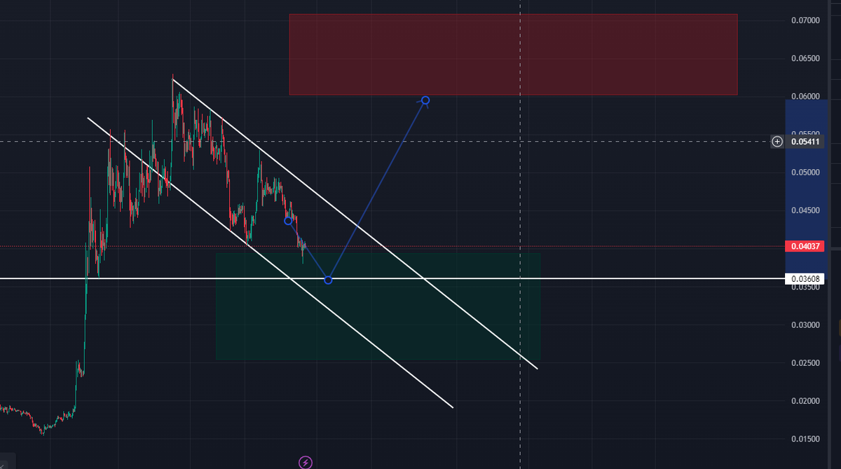 گالا وارد محدوده حمایتی خود شده و هر لحظه امکان برگشت به بالا را دارد( ساپورت اصلی 0.036)