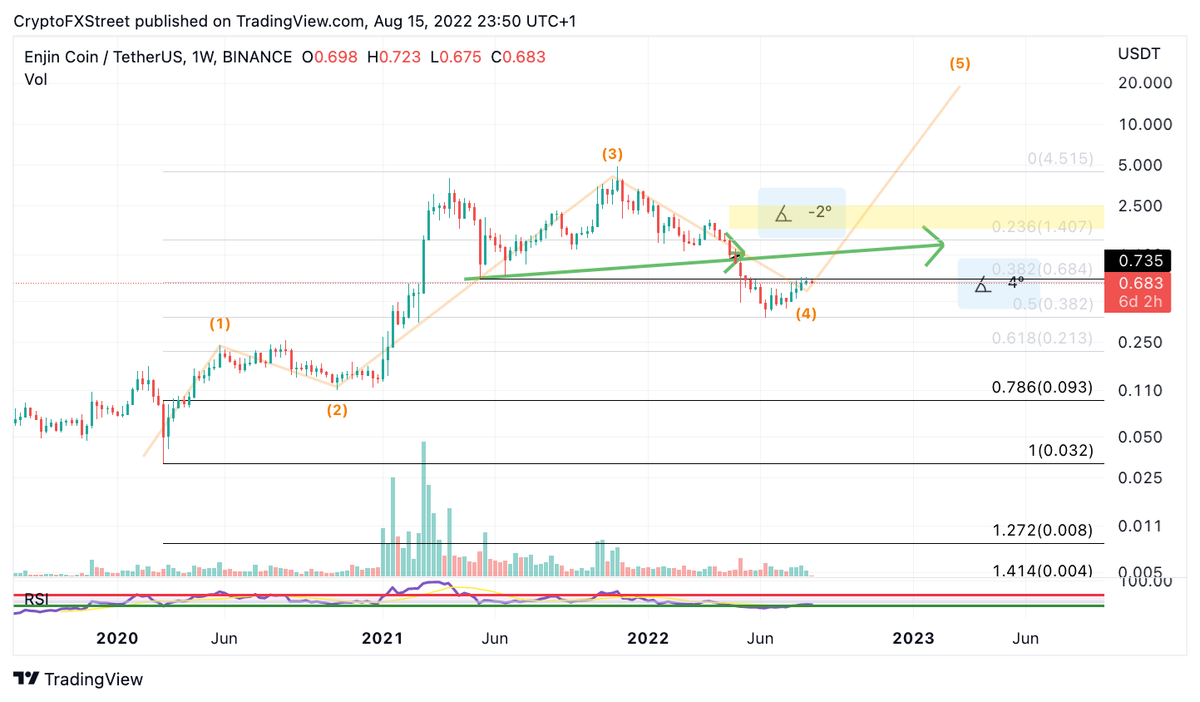 بر اساس تئوری موج الیوت و اقدام قیمت کلاسیک، قیمت توکن ENJ پتانسیل افزایش تا ۲۰ دلار را دارد.