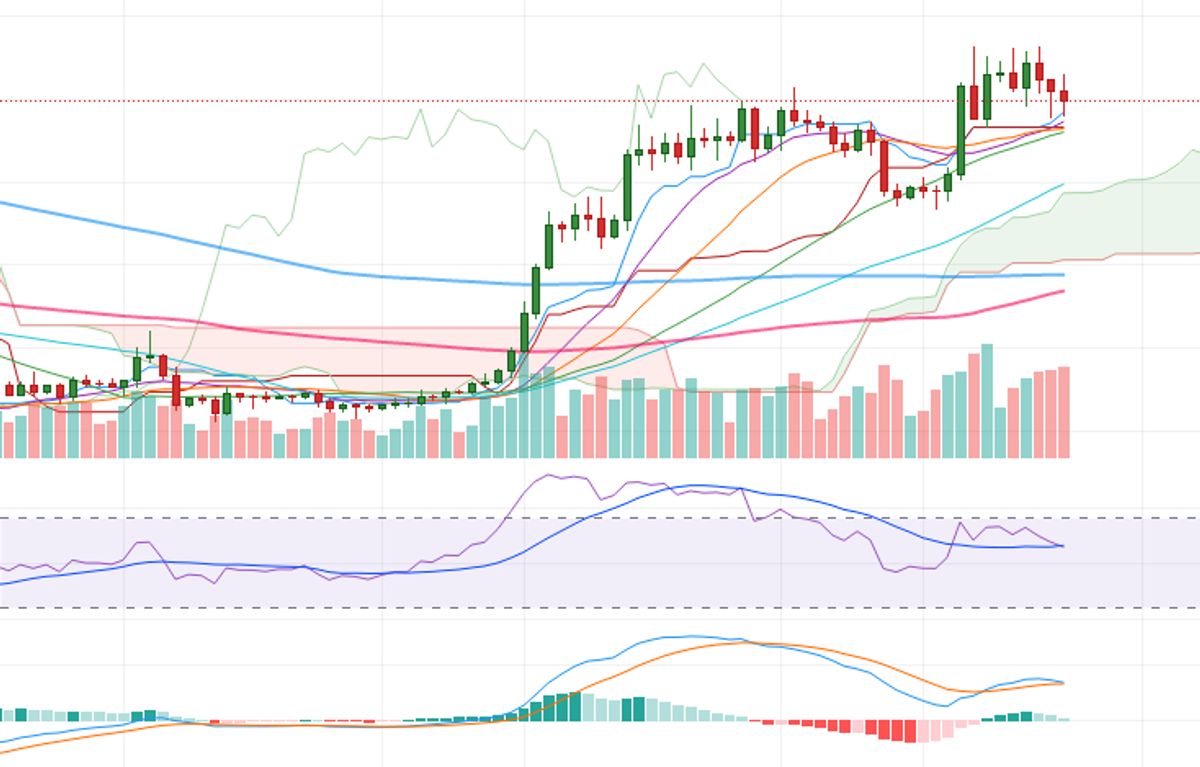 rsi متحرک 14 را رو به پایین شکسته و مکدی نیز با کراس نزولی و واگرایی منفی سیگنال خروج صادر کرده.