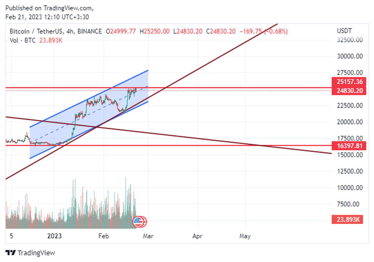 نظر شخصی:بیت روند صعودی دارد با توجه به تکنیکال وجود البته روی اخبار بسیار حساس نشون داده در عین حال باشکستن مقاومت 25157 میتونه تا هفته ی آینده 27k رو لمس کنه و درصورت شکستن خط حمایت میتونه راحت حتی تا 22k هم ریزش داشته باشه حد ضرر 24K ولیکن روند صعودی نشون داده و تمایل به لمس 27k بسییار زیاد هستش