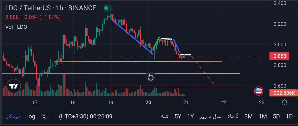 قیمت ارز LDO از ۱۹ فوریه که میشه دو روز قبل شروع کرده به نزولی شدن قیمت ها به این صورت است