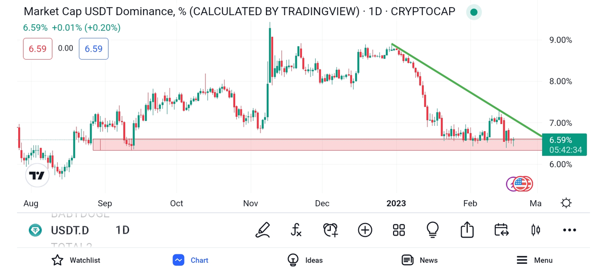 (همانطور که مشاهده می شوددامیننس تتر بر روی یک حمایت مهم قرار دارددرصورتی که بتواند خط روند نزولی خودرابشکند میبایست پوزیشن های خودرا مدیریت کنید)
