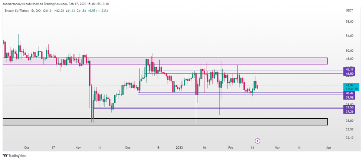 ارز دیجیتال بیت کوین ساتوشی به مدت بیش از 3 ماه در روند رنج قرار گرفته است، و نوسانات این ارز در بازه زمانی روزانه، بین دو محدوده حمایت مقاومت مشخص شده روی نمودار قابل مشاهده است. مقاومتی که در قیمت 46.70 الی 48.20 دلار قرار گرفته، و حمایت آن نیز در محدوده 34.20 الی 35.40 دلار می باشد. سه محدوده حمایت مقاومت برای معاملات کوتاه مدت روی نمودار در نظر گرفته شده است.