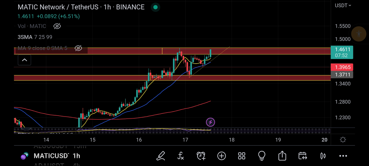 ارز ماتیک در تایم فریم یک ساعته وارد منطقه عرضه خود شده و امکان ریزش تا حوالی قیمت 1.35 هست