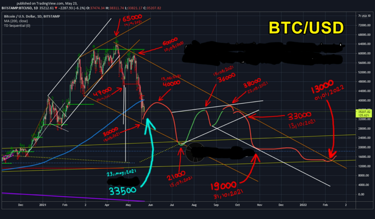 حدود 1 سال قبل این چارت زدیم و طبق الگوهای زودیاک پانتگرام روند رسم کردیم اون زمان هیچکس باور نداشت که بیت اینقدر پایین بیاد اما آمد.چون این کد باید میزد و حالا هم میگیم بیت روندش صعودی شده و سقف قیمت خودش را میزند