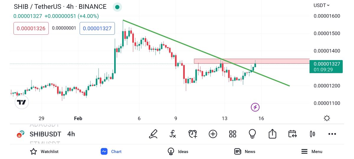 سلام ارز شیبا درتایم فریم ۴ساعته همانطورکه مشاهده می شود پس ازآنکه خط روند نزولی خودراشکست الان درگیر محدوده رسم شده می باشد درصورتی که قیمت بتواند بالای محدوده رسم شده تثبیت کند سناریوصعودی خواهدبوداما اگر قیمت نتواند بالای محدوده رسم شده تثبیت کند ومحدوده رسم شده قیمت رابه زیر خط روند سوق دهد روند همچنان نزولی خواهد بود