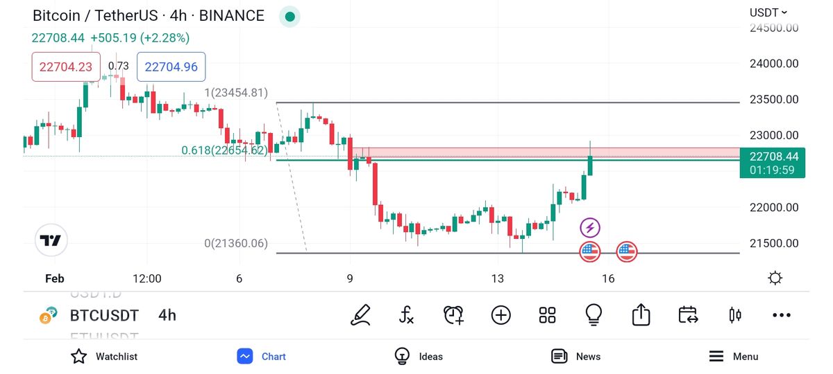 سلام ارزبیت کوین همانطور که مشاهده می شوددرتایم فریم ۴ساعته درگیرمحدوده رسم شده که یک ناحیه مقاومتی است می باشد همچنین وقتی که فیبوناتچی روی نمودار رسم می کنیم مشاهده میکنیم قیمت بر روی فیبو 0.618قراردارد درصورتی که قیمت بتواند بالای محدوده رسم شده تثبیت کند اهداف بالاتر در دسترس می شوند اما اگر قیمت نتواند مقاومت سد راه خودرا بشکند قیمت میتواند اهداف پایین تر را ببیند