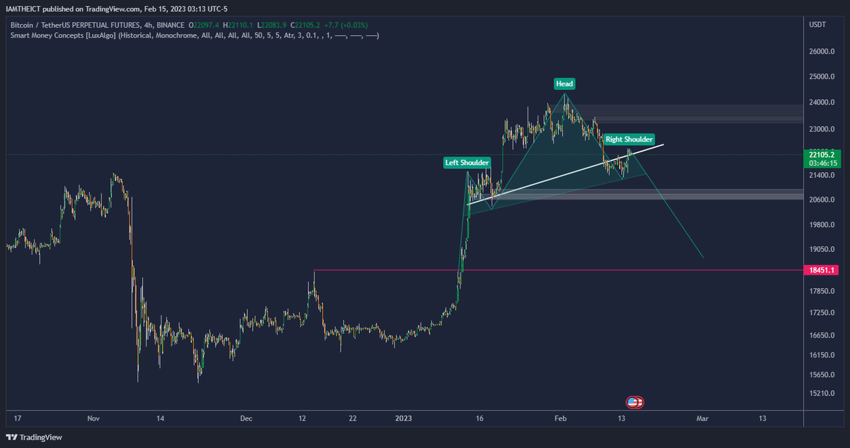 در حال شکگیری الگوی سر و شانه در تایم 4 ساعته