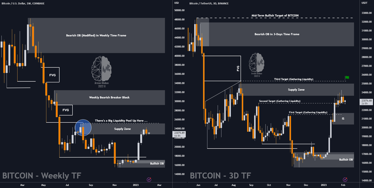به روز رسانی تحلیل هفتگی بیت کوین : همانطور که می بینید، قیمت همچنان در محدوده عرضه ای است که هفته گذشته مشخص کردم، تا زمانی که قیمت حمایت 22300 دلاری را حفظ کند، همچنان می توانیم انتظار رشد دیگری از آن داشته باشیم، حمایت مهم و معتبر بعدی. 20400 تا 21680 دلار است، هدف صعودی مهم بعدی 25250 دلار است! (TA اصلی هنوز معتبر است)