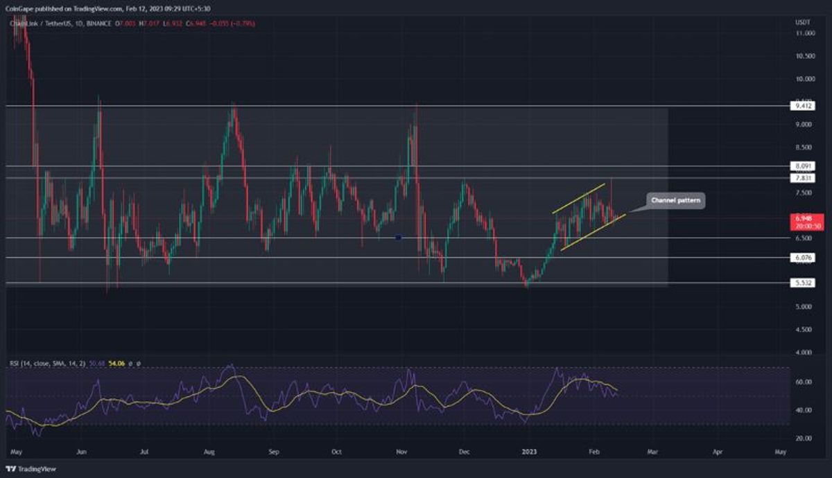 قیمت چین لینک در حال حاضر در یک الگوی کانال صعودی در حال افزایش است. اگرچه این الگو در کوتاهمدت دارای یک روند صعودی ثابت است، اما با شکست خط روند حمایتی، قیمت برای یک سقوط شدید آماده میشود..