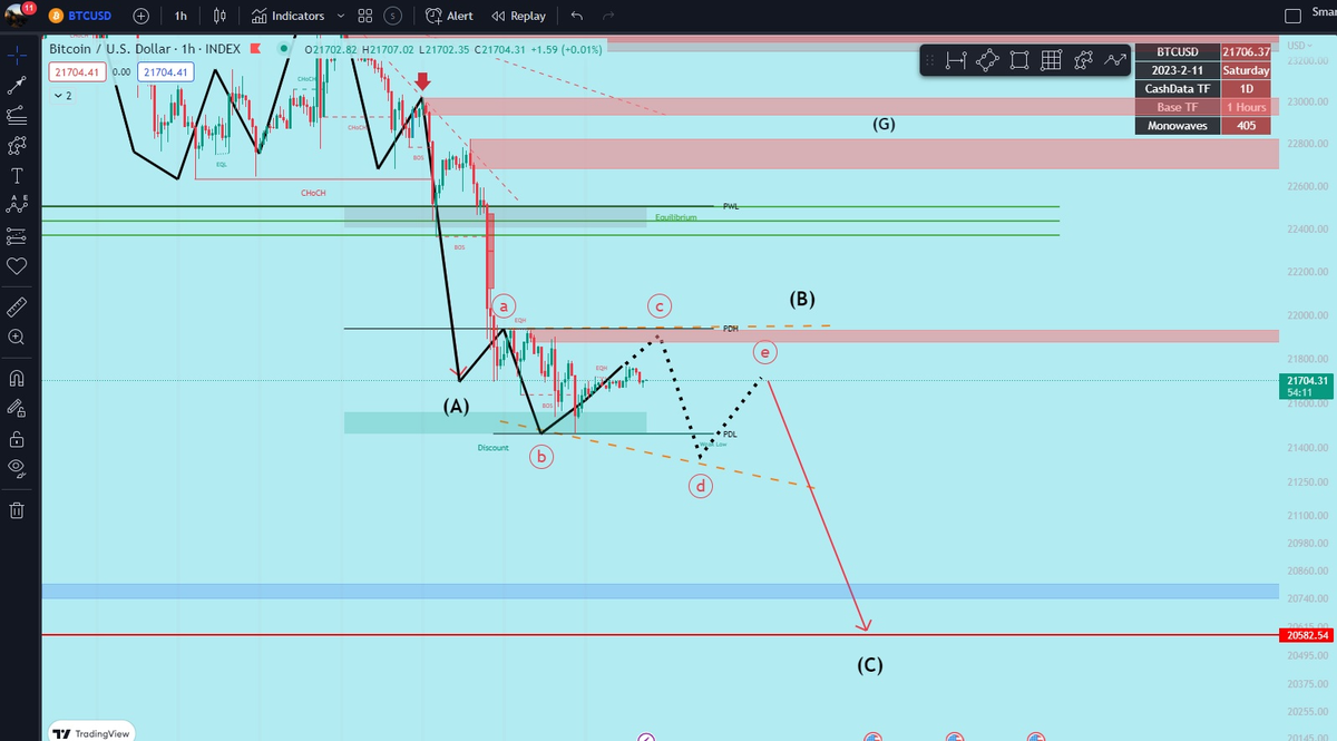 بیت کوین در کش دیتای روزانه موج نزولی به صورت abc