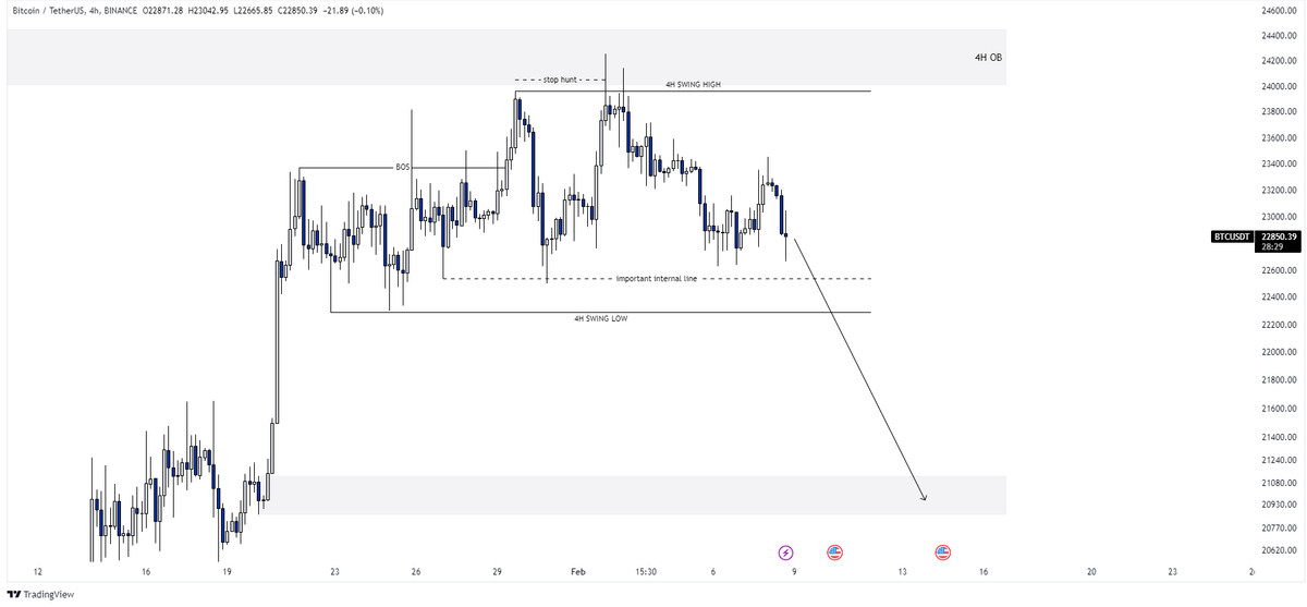 تحلیل تایم 4 ساعته بیت کوین،با توجه به استاپ هانتی که همراه با ورود به محدوده 24 هزار دلار داشتیم که یک ناحیه عرضه قوی نیز بود، حالا انتظار اصلاح تا محدوده 21 هزار دلار و در نهایت 18 هزار دلار رو خواهم داشت.