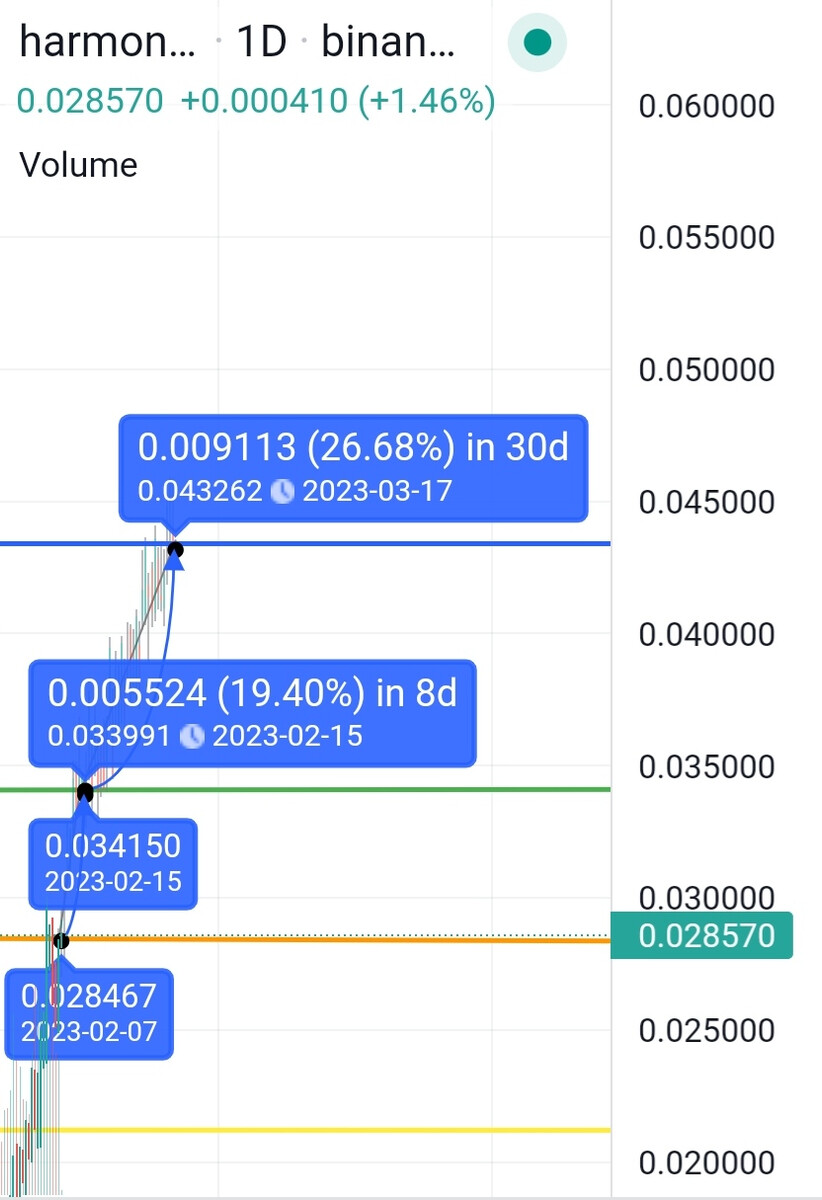 سلام دوستان تحلیل ارز هارمونی رو به دست آوردم همه هدف گذاری ها روی حساب کتاب هست این ارز فعلا برای سرمایه گذاری بلند مدت خوبه نه برای نوسان گرفتن پس دوستانی که برای نوسان این ارز رو میخرند هیچ بدرد شون نمیخوره و فقط به ارز ضربه میزنند خواهش میکنم برای نوسان خرید نکنید ، که هم به خودتون و هم به دیگران ضربه میزنید حد ضرر رو مشخص کردم با این سرعت که داره میره ضرر فکر نکنم بده فعلا رو به صعود هست و اگر هم ضرر بخواد بده محدود خط زرد محدوده ضرر این ارز هست از 0.365813 سنت سال قبل برج ۱۰ به 0.01000 سنت امسال رسیده و بعد از آن رشت کرده و به 0.02838 سنت امروز آمده و در سال