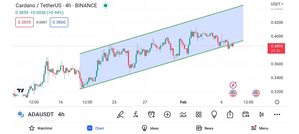 سلام ارز کاردانو درتایم فریم ۴ساعته داخل یک کانال صعودی بودکه اکنون از آن کانال صعودی خارج شده است درصورتی که قیمت شدو به کانال صعودی بزند سناریو نزول مطرح می شود اما اگرقیمت دوباره به کانال صعودی برگردد باید دنبال دلیل برای لانگ باشیم