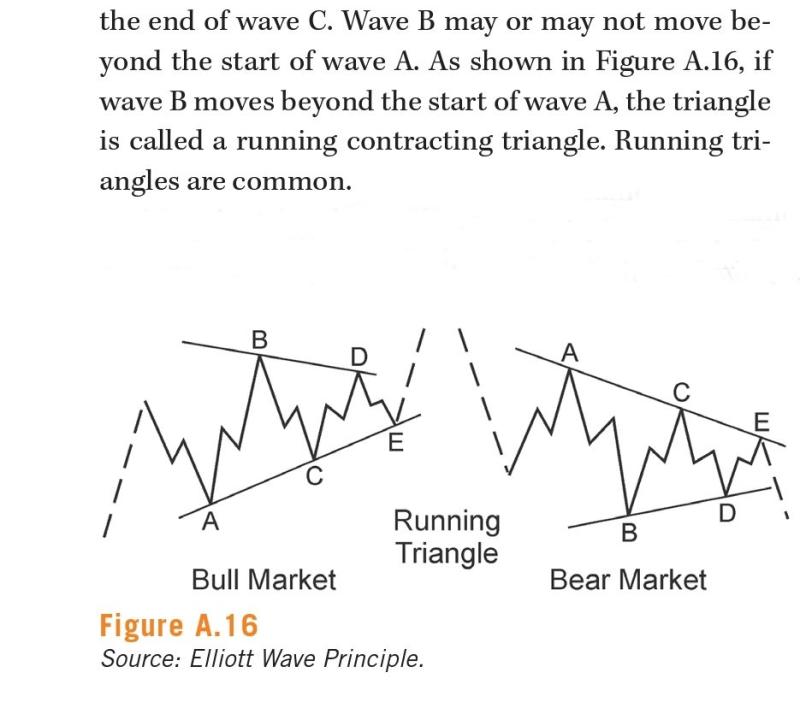 موج B ممکن است فراتر از شروع موج A حرکت کند یا نکند. همانطور که در شکل A.16 نشان داده شده است، اگر موج B فراتر از شروع موج A حرکت کند، مثلث یک مثلث انقباض در حال اجرا نامیده می شود. Running triangles رایج هستند.