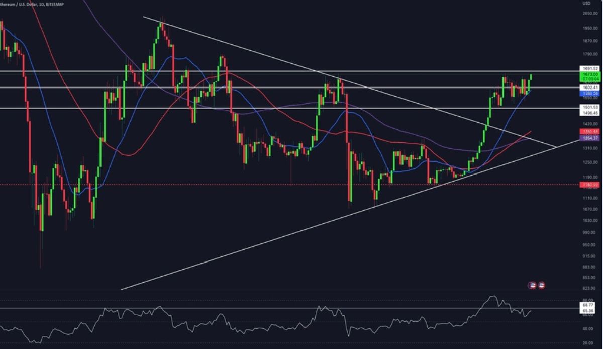 این افزایش قیمت باعث شد که اتریوم به بالاترین سطح خود از 12 سپتامبر رسیده باشد، زمانی که به 1761 دلار رسید