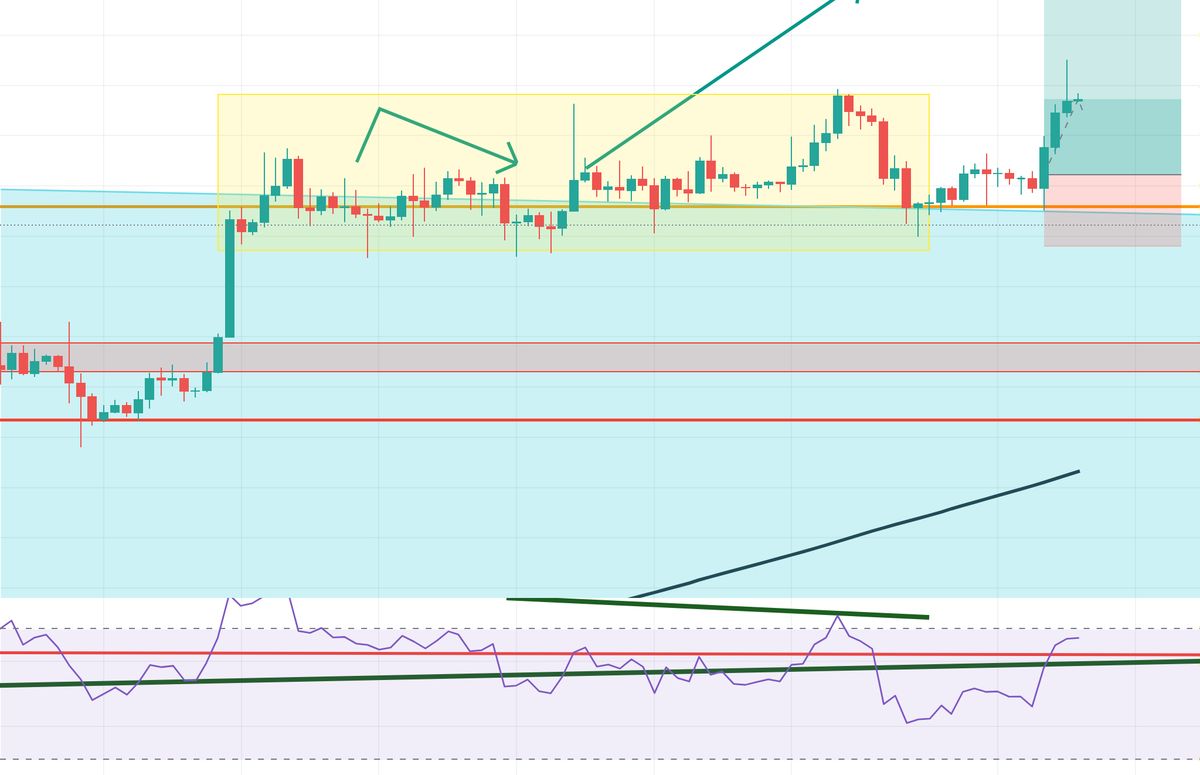 خروج بیتکوین از حالت پرچم و رشد آن به اندازه ی میله ی پرچم که حداقل عدد 24889 را نشان می دهد.