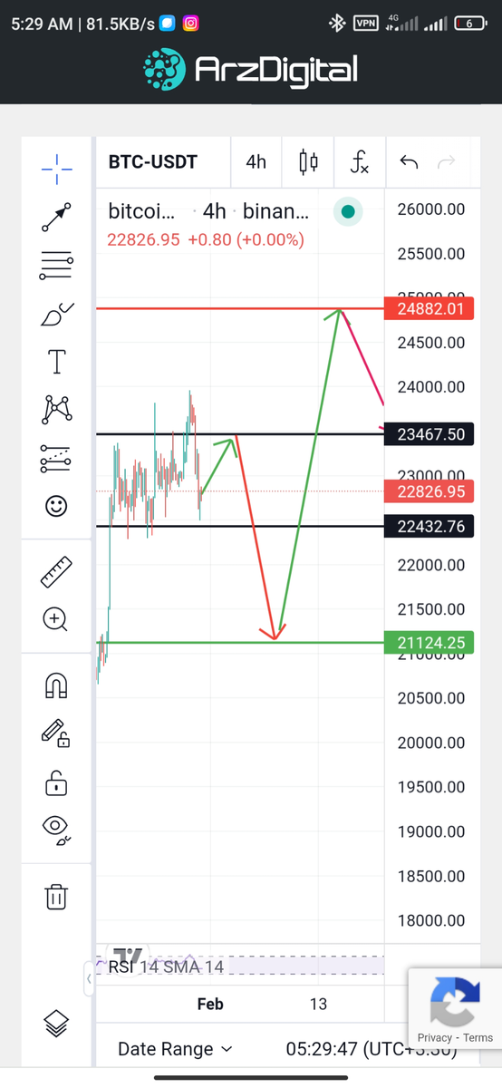 قیمت به بالا نهایت تا ۲۳۴۰۰ الی ۲۳۹۰۰ صعود میکند و از همون جا قیمت روند نزولی خودش رو شروع میکنه احتمال ۵۰ درصد محدود قیمتی ۲۱۲۰۰ رو تاچ کنه یا نهایت ۲۰۲۰۰ شدو بزنه و دوباره به صعود خودش تا محدوده ۲۴۸۰۰ الی ۲۵۲۰۰ داریم