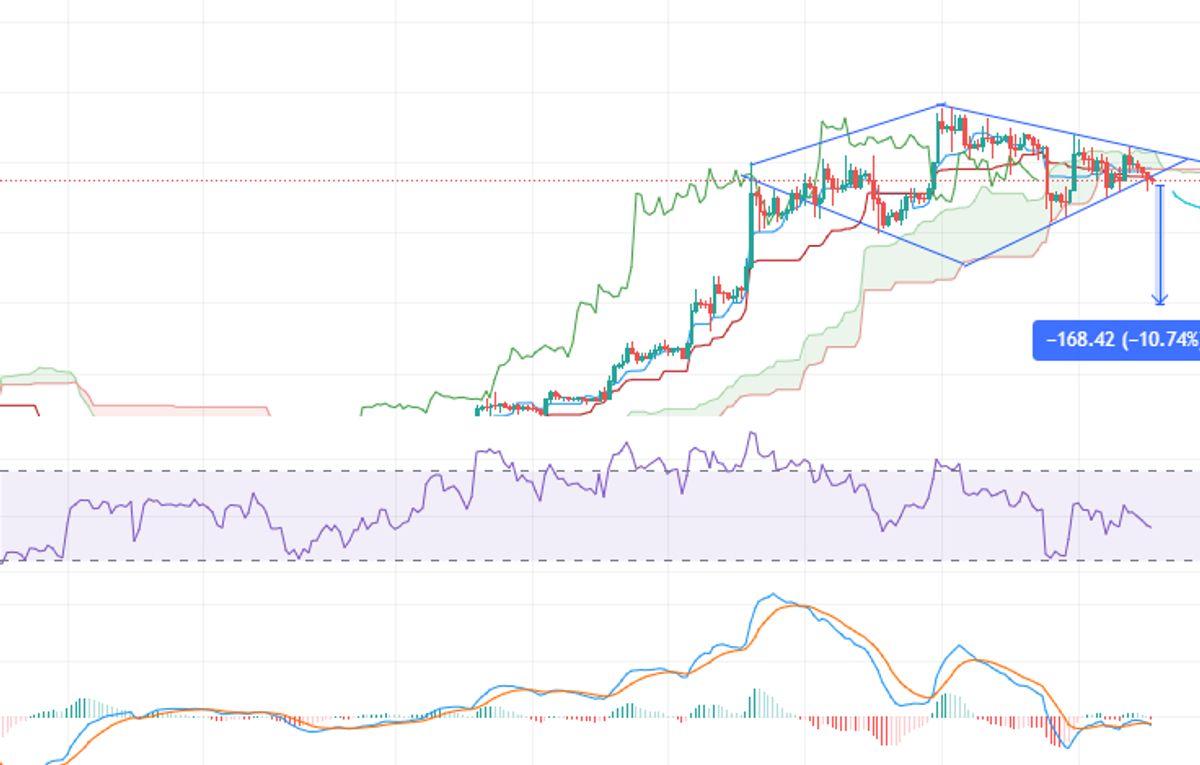 همونطور که میبینید مقاومت رو شکونده و داره طبق اصل الگوی الماس پیش میره. انتظار دارم تا 10% ریزش داشته باشیم
