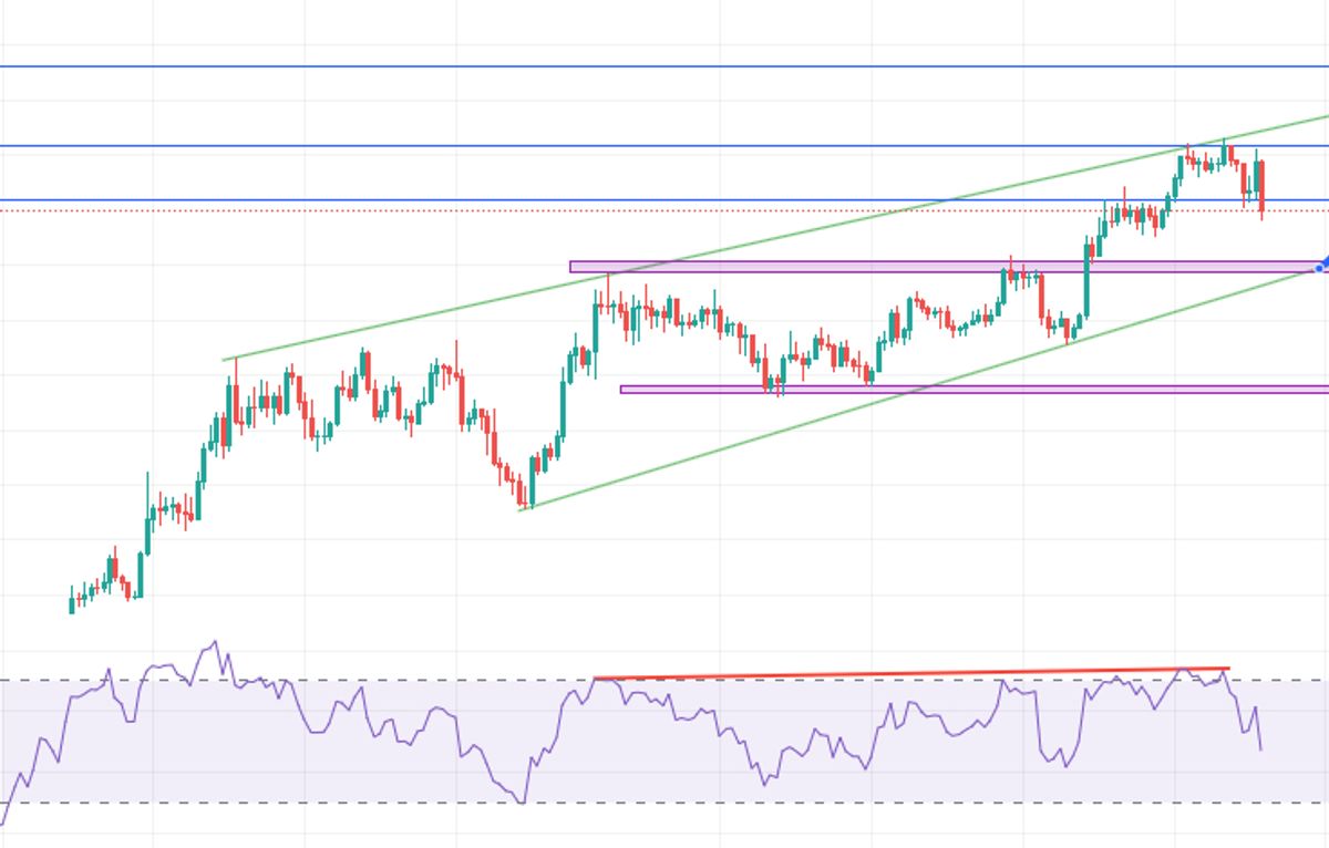 در اندیکاتور RSI سقف قیمت به قله قبلی رسیده
